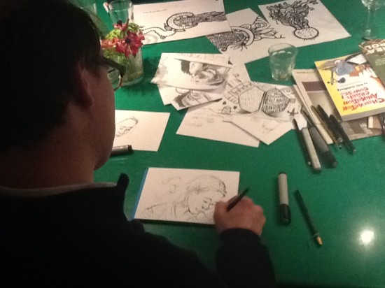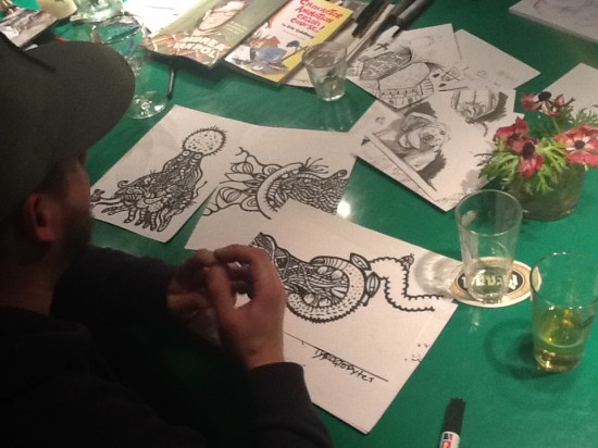 Verschillende professionele en niet-professionele tekenaars komen samen om te tekenen, te drinken en goede gesprekken te voeren. Vanuit een zin om vrij te tekenen en aan de tekenvaardigheid te werken in een goede omgeving zullen deze avonden regelmatig worden georganiseerd.